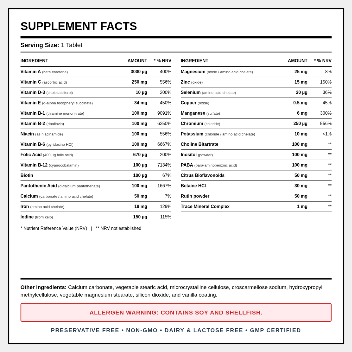 Vitamin A (β-Carotin) 3000mcg (429%)