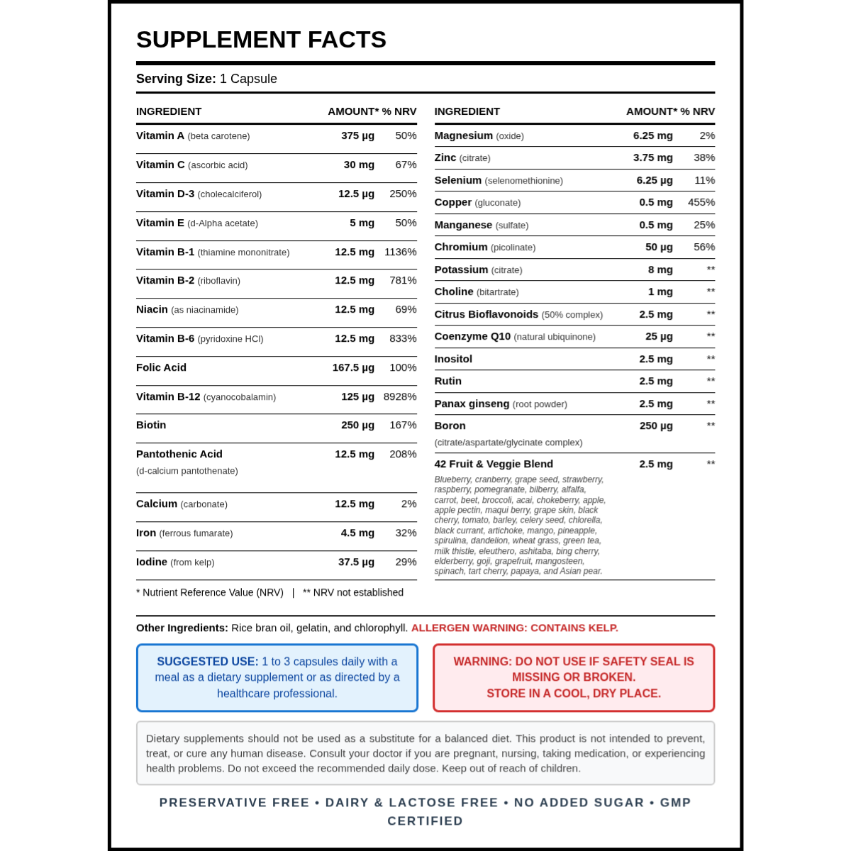 | Iode (provenant d'algues) | 37.5mcg (29%) |