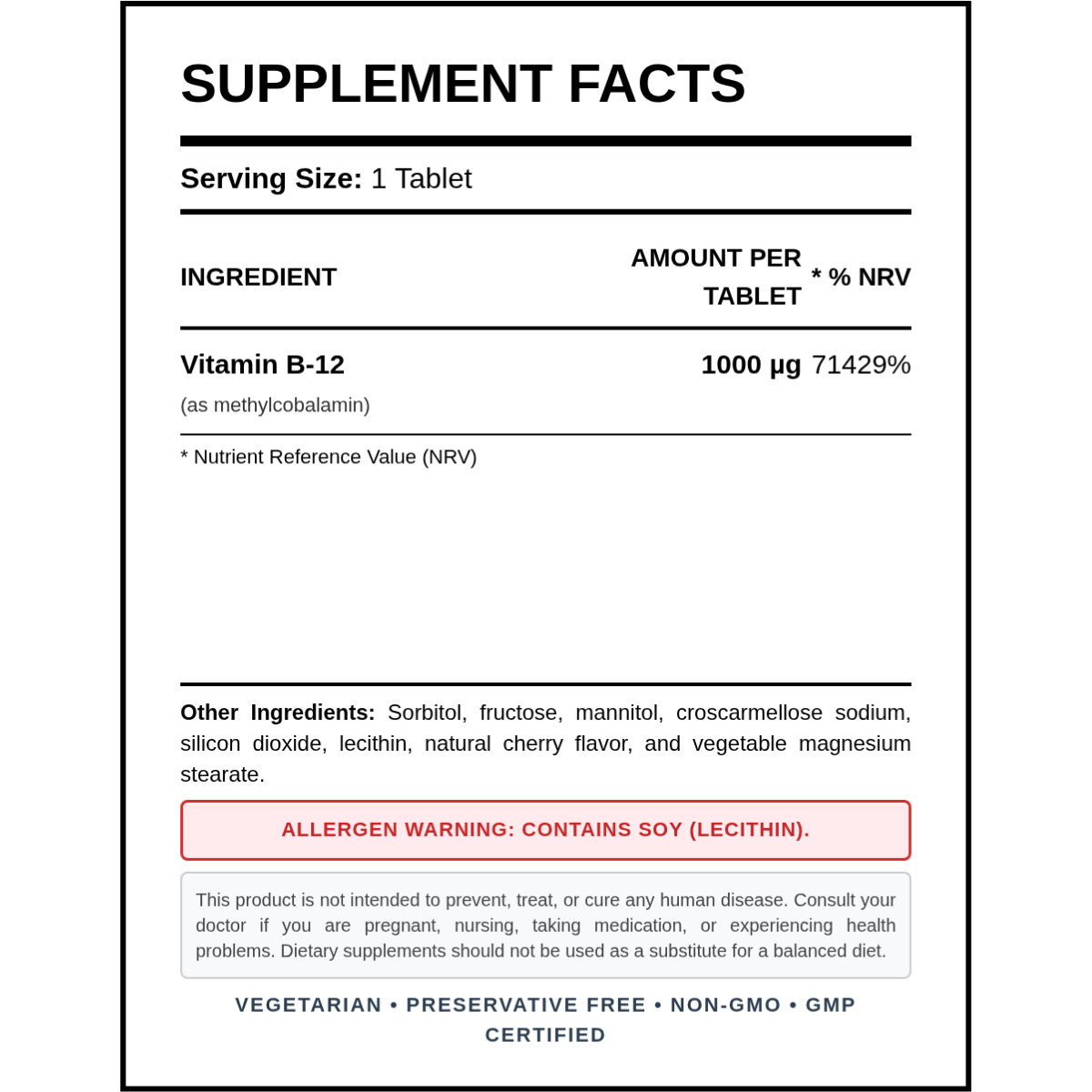 Natural Vitamins - B12 1000mcg 30/100 Tablets