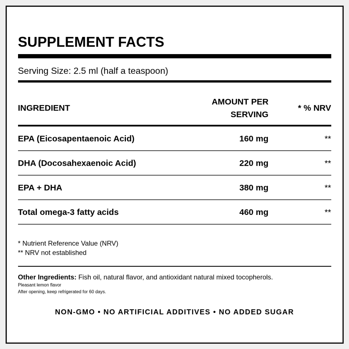 Το υγρό Ωμέγα 3 είναι ο απόλυτος σύμμαχος για την υγιή ανάπτυξη των παιδιών σας! Εμπλουτισμένο με πιο ωφέλιμα λιπαρά οξέα EPA και DHA, που υποστηρίζουν τη γνωστική λειτουργία, τη συγκέντρωση και την ευεξία του εγκεφάλου. Με ευχάριστη γεύση που τα παιδιά αγαπούν, κάθε δόση προσφέρει τα απαραίτητα θρεπτικά συστατικά για τη σωστή ανάπτυξη των ματιών και την ενίσχυση του ανοσοποιητικού συστήματος.