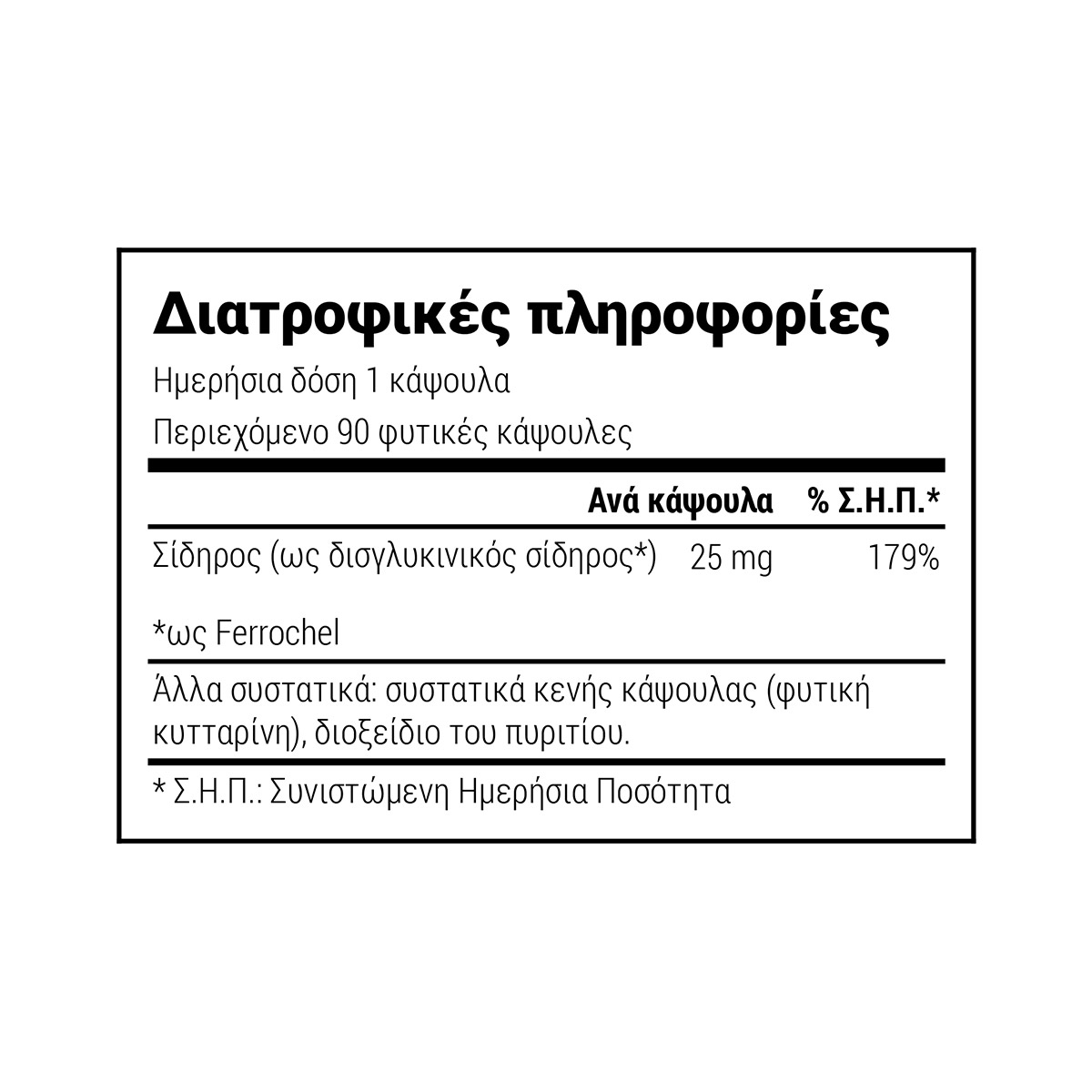 - Σίδηρος (ως δισγλυκινικός σίδηρος) 25mg *Ferrochel